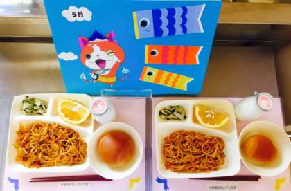 カレースパゲッティには豚ひき肉とベーコンの他にタマネギ、人参、ピーマンなどの野菜をたっぷりと加えています。野菜が苦手な子どもにも大好評の献立です。