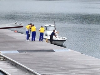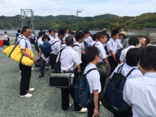予定通り須崎スポーツセンターに到着しました。盛大な歓迎を受け、各受け入れ家族とともに出発していきました。また、人気ゆるキャラのしんじょうくんも出迎えてくれました。その後、船で早速漁に出た班もありました。
