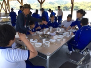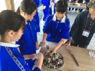 修学旅行2日目 できあがったカツオのたたきをお皿に盛りつけ、いただきま〜す。 昼食後は桂浜へ向かいます。