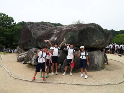 5月16日(火)、5・6年生が奈良の飛鳥方面に遠足に行きました。天候にも恵まれ、予定通りグループ活動を行うことができました。石舞台で写真を撮ったり、昼休憩のときにみんなで楽しく遊んだりしました。