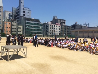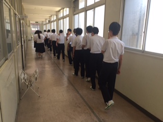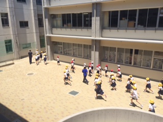 5月22日(月)、小中合同で避難訓練を行いました。今回は給食室で火災が発生したという想定で行いました。児童生徒はハンカチで口を押え、素早く静かに運動場に避難することができました。