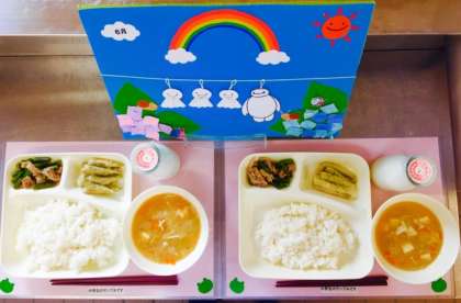 豚肉と三度豆の炒め物には生の三度豆を使っています。下茹でをしてから豚肉と一緒に炒めています。味付けは、塩と濃い口醤油だけですが、旬の三度豆のおいしさが味わえて、子どもたちにも好評でした。