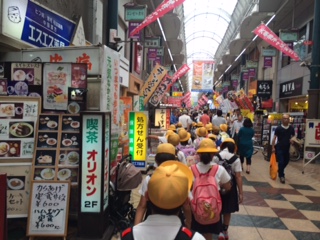 その後、環状線に乗り、天満駅で降りました。天神橋筋商店街にはたくさんのお店があり、そこにたくさんの人が訪れ、買い物をしているようすを見ました。