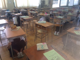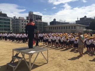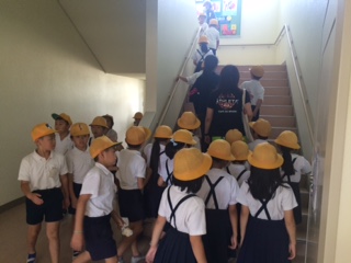 7月1日(土)、全学年で防災訓練を行いました。地震からの津波を想定し、まずは運動場に避難しました。その後、学年毎に校舎の3階と4階に2次避難しました。