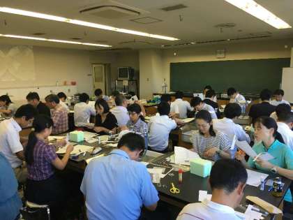 40名ほどの中学校の理科の先生が集まった研修会は熱気のうちに終了しました。