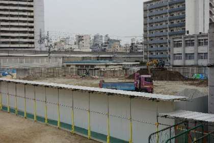 先日まで杭を打ち込んでいましたが、それも終わり、今日の工事は西側隅を掘り起こしていました。かなりの量の土が掘り出されました。