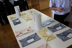 美術部や国語科、英語科など各教科で提出された課題も展示されました。写真は美術科と家庭科の作品です。