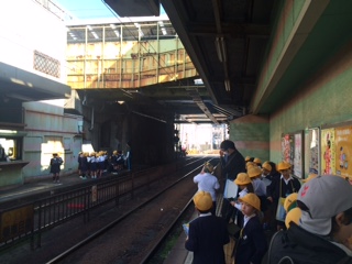2年生の生活科の学習のようすです。今日は阪堺電軌乗車体験をしました。先日、見学に行ったJR新今宮駅と今回訪れた新今宮駅前駅・松田町駅の違いを見つけていきました。