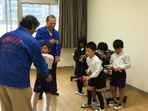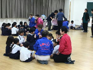 今年度、これまで十分にできていなかった地域との連携について、推進していく取り組みを進めています。その一環として、1年生は「むかしあそびをたのしもう」ということで、地域の皆さんに来ていただいて、いろいろな昔遊びを教えてもらって楽しいひと時を過ごしました。
