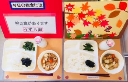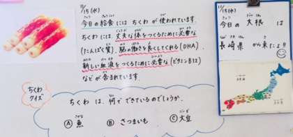 海苔の佃煮は刻み海苔とみじん切りにした椎茸に醤油、みりん、砂糖、料理酒、鰹出汁を加えて、滑らかになるまでゆっくりと煮詰めています。手作りの佃煮は優しい味付けで子どもたちに大人気です。