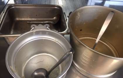 5年生の教室からは「いただきます!」と元気な声が聞こえてきました。「今日の給食、めっちゃ楽しみにしててん!」「おいしい!」と笑顔でいっぱいでした。もちろん完食で、空っぽになった食缶を見た調理員さんはとても喜んでくれていました。