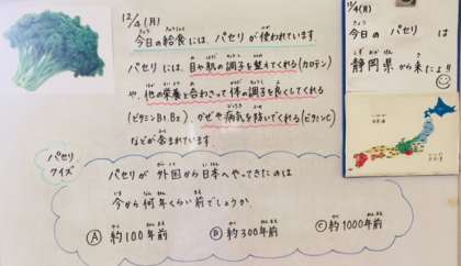 3年生の教室ではどんどん寒くなってきたにもかかわらず、冷たい牛乳が大人気です。休み時間に外で体を動かしているためか、子どもたちは「お腹もすいて、のども渇いているから、牛乳がめっちゃおいしい!」と元気いっぱいでした。
