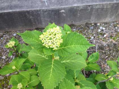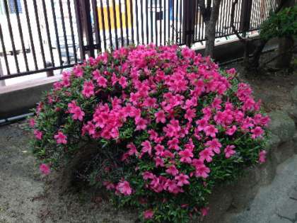 正門から左手に進んでいくと、サツキ、萩、紫陽花が並んでいます。サツキは見頃ですが、萩は葉のみ。紫陽花は今度は自分の番だといわんばかりにつぼみを膨らませつつあります。