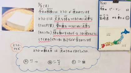 うす皮ごと食べて[苦い味がする…]と言っていた子に、むいて食べてもらうと、何人もが「おいしい!」と驚いていました。むき方を覚えて上手に食べられた子もたくさんいました。