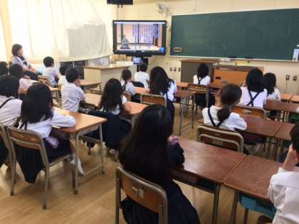 5月9日(水)、2年1組では、5時間目の前のモジュールの時間に、落語についての動画を見ました。落語「寿限無」を聞いて、笑顔があふれていました。また、落語家がするいろいろな動作を見て、画面と同じようにやってみる児童もたくさんいました。とても楽しんでいました。
