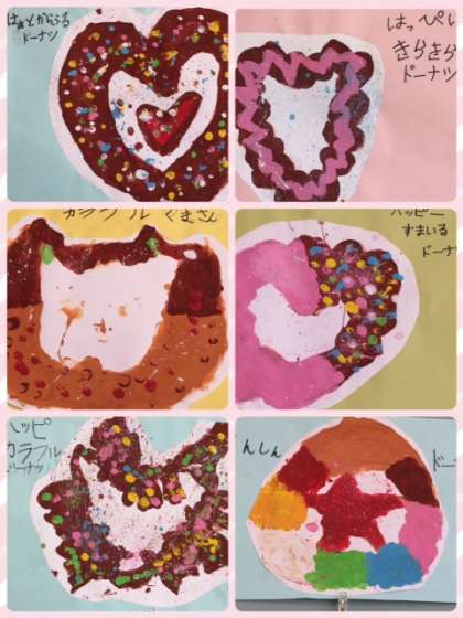 カラフルでいろいろな形のドーナッツが出来上がりました。
