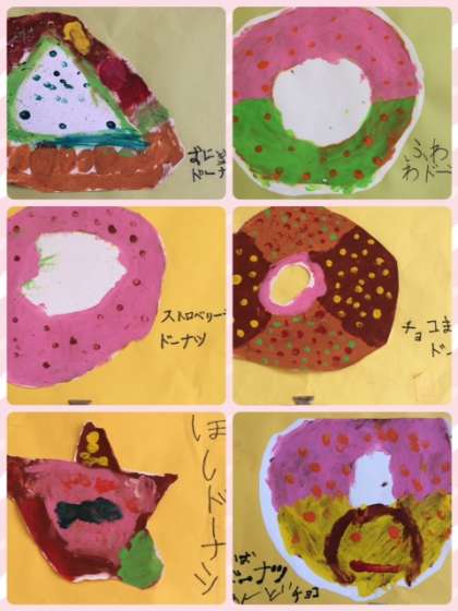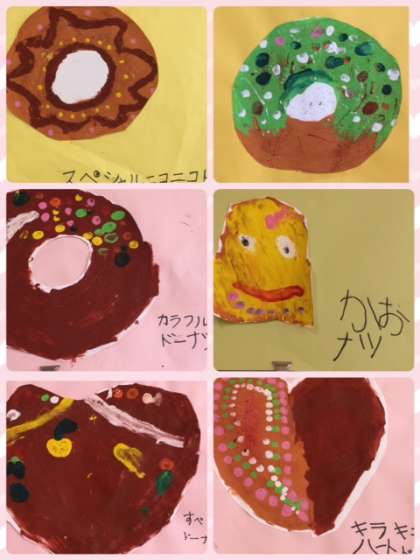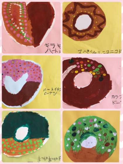 一人一人が、自分が作ったドーナッツに名前もつけました。子どもたちのアイデアが光る作品です。