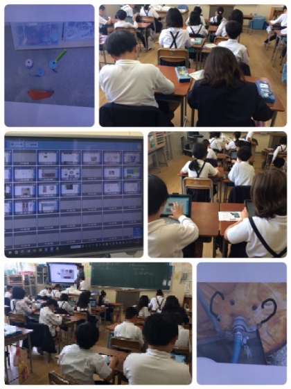 また、「SKYMENU」機能を使って、全員のタブレット画面を電子黒板に映し出すことができます。さらには、選択した児童の画面だけを映し出すことができ、今日の学習を通して、様々な操作を覚えました。覚えた操作を使って、他の学習でも効果的にタブレットを活用できます。楽しみです。