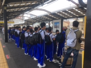 駅でもきちんと整列乗車しています。