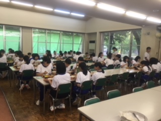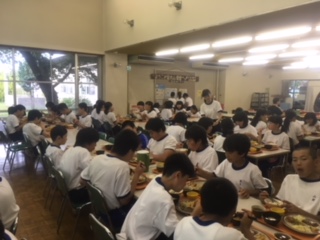 入浴もすみ、待ちに待った夕食です。みんなで、美味しくいただきます。