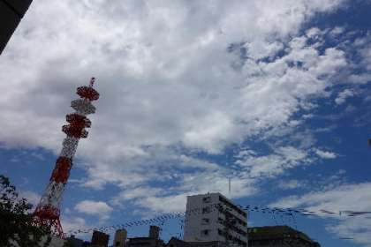 昨日、近畿も梅雨入りしたというニュースがありましたが、朝からなんだかいい天気。風も心地よく、思わず和んでしまいます。空を見上げると思いのほかきれいな青色だったので、写真を撮ってみました。