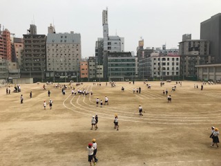 本年度より、児童集会が金曜日の朝になりました。今日はおにごっこをしました。広いグランドを、子どもたちが駆け回りました。
