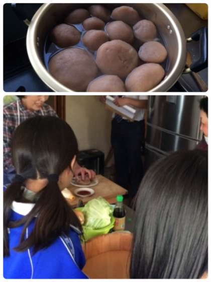 一緒に手作りこんにゃくを作って、食べました。とれたての野菜や山菜が、今夜の夕食にでてきます。