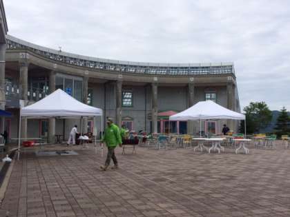 修学旅行の2日目がスタートしました。標高が少し高いので、気温は少しひんやりしていますが、さわやかな朝です。9時45分から、ゆとりすとパークおおとよで退村式を行います。その後、カツオたたき体験をします。今、その準備がされています。