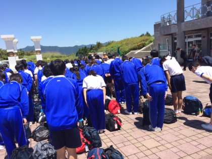 カツオのたたき体験を終えました。みんなで、ありがとうございましたとお礼をいいました。