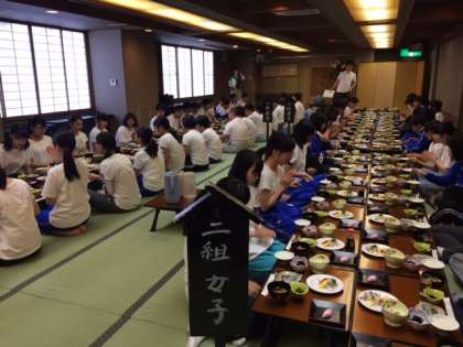 修学旅行の最終日が始まりました。昨夜はすぐに就寝し、朝まで、ぐっすり休んでいました。朝食会場へも、早く集合し、朝食が始まりました。