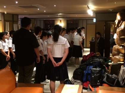 退館式です。これから、お世話になった宿舎にお別れをし、中野うどん学校に行きます。