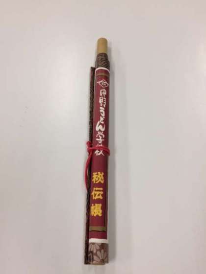 最後に、卒業証書、綿棒をもらって、うどん打ち体験が終了しました。これから、班行動です。