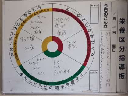 [トマトと卵の中華スープ]は、個別対応献立となっており、卵アレルギーの児童には、卵を除いて提供しています。