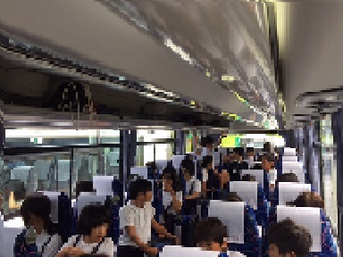 ほぼ予定通りに、お世話になる宿舎に到着しました。道路も混んでおらず、スムーズに進んできました。5年生のみんなは、バスから見える普段見られないような景色に大興奮でした。
