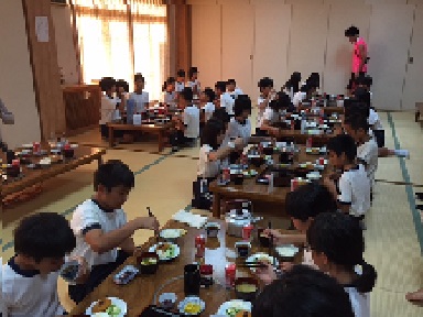 2日目の朝です。みんな、昨晩は部屋に戻るとすぐにぐっすり、朝までしっかり眠ることができました。朝ごはんもモリモリ食べています。今日はこの後、山登りに出発!暑さ対策もして、準備万端です!