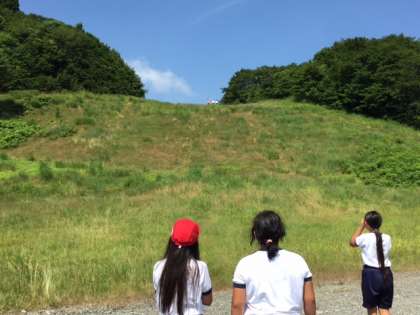 大きな声で「やっほー!」の叫びあいっこです。山登りの後ですが、みんな元気いっぱいです。