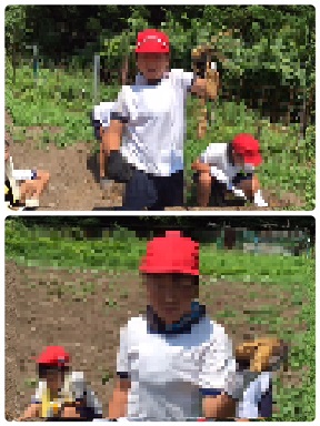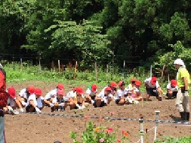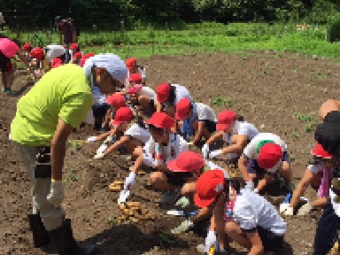 山をくだり、じゃがいも堀りです。掘った芋は、この後のはんごうすいさんのカレーに使うので、みんな真剣です。