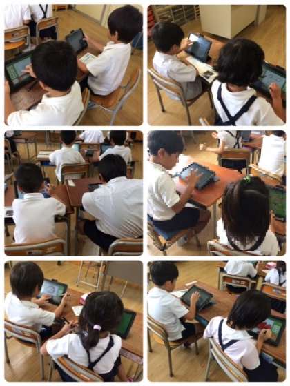 1年1組の学級活動の時間の様子です。「タブレットを活用しよう!」ということで、アプリ「ミライシード」を使って学習する児童やペイント機能を使って好きな絵を描いている児童など、嬉々として取り組んでいました。1学期に初めてタブレットを活用していた様子から比較して、とっても早く、迷いなく操作している姿に感心してしまいました。