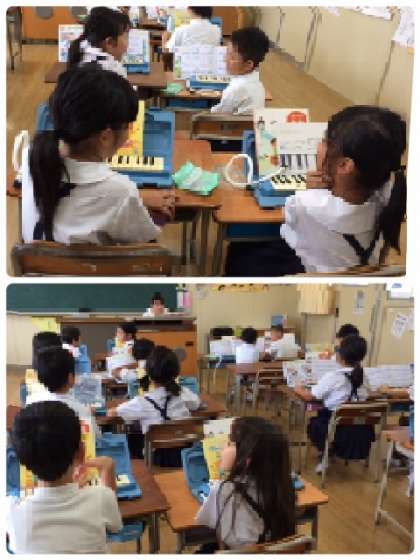 9月7日(金)、昼休みを終えて、5時間目がもう少しで始まろうという時間。元気な歌声に誘われて2年1組の教室に来ました。音楽の時間の前のウォーミングアップ(?)先生の演奏に合わせて歌っていました。歌声に合わせて、隣同士で笑顔の交換。楽しい奮起で、5時間目のスタートを迎えました。