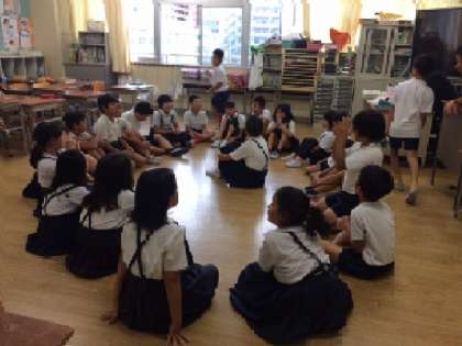 4年1組で、みんな遊びをしていました。楽しそうです。
