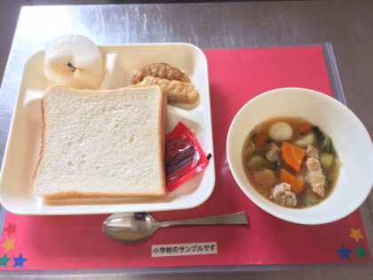 今日の給食は、小学生は【食パン、いちごジャム、あげギョーザ、中華煮、なし(豊水)、牛乳】、中学生は、なし(豊水)に代わって【和なしの缶詰】となっています。