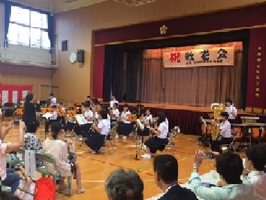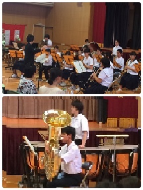 吹奏楽部は、敬老会第二部で演奏をしました。まずは、コンクールでの演奏した「アルセナール」を披露しました。続いて、「美女と野獣のテーマ」。たくさんの地域の方が見守る中、しっかりとした演奏を聞かせてくれました。地域の方からも、ほめていただきました。