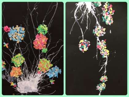 右側は「うみにさくはな」〜がんばったところは、かみをちぎるのがむずかしかったです。
