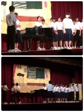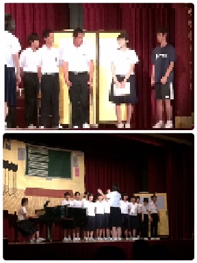 8年生の演技は、「劇 夢を信じて 合唱 時の旅人」です。