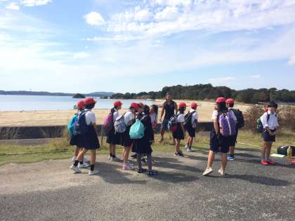 宿舎の横を通って、はまべに到着。