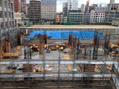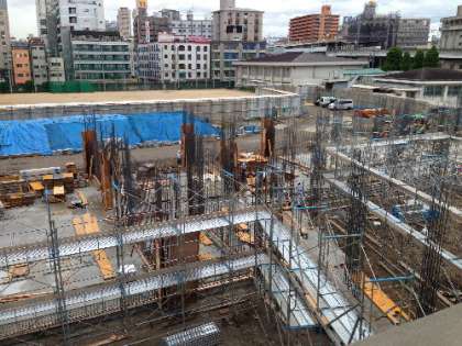 10日の工事は、柱の枠組みが始まりました。ここにコンクリートを流し込んで柱になるのでしょう。