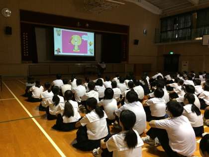 10月5日(金)、5〜9年生の児童・生徒を対象に「防災教育研修会」を実施しました。東日本大震災の時に、自身も被災され、その後、防災に取り組んでこられた方を講師としてお迎えしました。