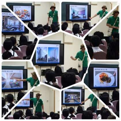 都市型リゾートホテルは、今年4月から始まり、東京・札幌につづいて、新今宮に完成したら3つめになるそうです。まずは、ホテルの説明から、OMOレンジャーの任務について説明してもらいました。途中、何度も質問があり、4年生児童は、積極的に手を挙げて答えていました。