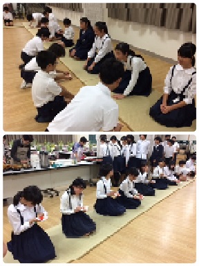 お抹茶が苦手な児童には「薄茶」を出していただきました。初めてお抹茶をいただく児童がたくさんいました。とても貴重な体験をさせていただきました。