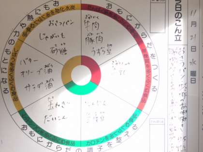 今日の給食は、小中ともに【おさつパン、牛肉の香味焼き、牛乳、豚肉とだいこんのカレー煮、うずら豆のグラッセ】です。